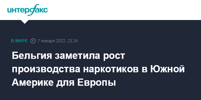 Бельгия заметила рост производства наркотиков в Южной Америке для Европы