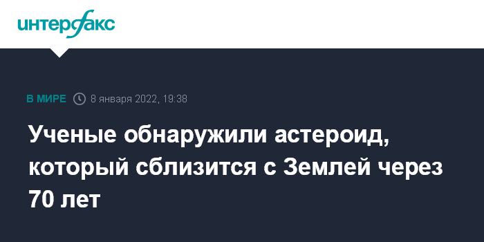 Москва. 8 января. INTERFAX.RU - Ученые Института прикладной математики РАН обнаружили астероид массой 18 тыс. тонн, который сблизится с Землей в апреле 2095 года, сообщили в субботу в "Роскосмосе".