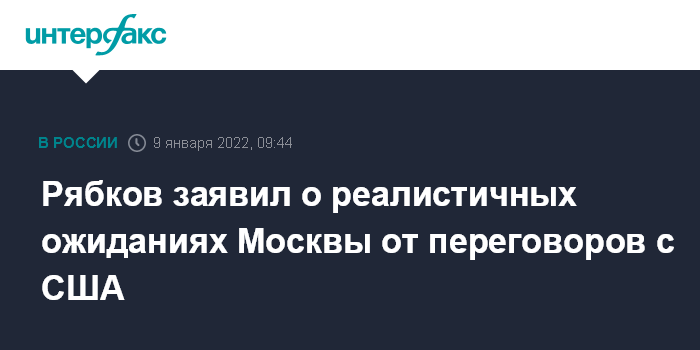 Москва. 9 января. INTERFAX.RU - У Москвы нет оптимизма в преддверии предстоящих переговоров с США в Женеве по гарантиям безопасности, ожидания реалистичные, заявил "Интерфаксу" замглавы МИД РФ Сергей Рябков.