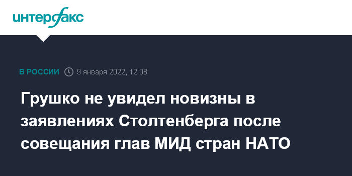 Москва. 9 января. INTERFAX.RU - Заявления генсека НАТО Йенса Столтенберга по итогам внеочередного совещания глав МИД стран альянса не несут в себе ничего нового, никак не повлияют на решение России вести переговоры по гарантиям безопасности в Брюсселе, заявил замглавы МИД РФ Александр Грушко.