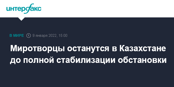 "В настоящее время подразделения миротворческих сил выполняют задачи по охране важных военных, государственных и социально значимых объектов в городе Алма-Ата и прилегающих к нему районах", - сказал он. По его словам, коллективные миротворческие силы завершили развертывание на территории Казахстана.