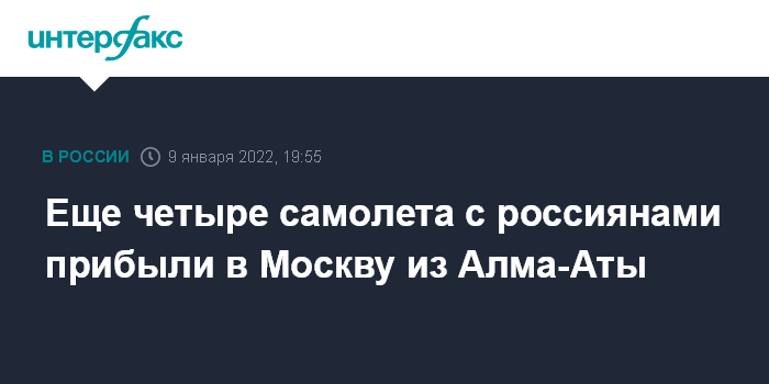 МИД РФ сообщал, что всего в воскресенье из Алма-Аты вылетели 13 рейсов. Всего примерно 1 600 граждан хотят вернуться в Россию.
