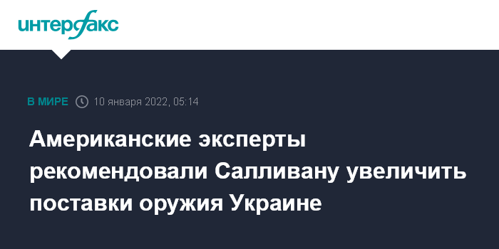Москва. 10 января. INTERFAX.RU - Группа экспертов по России в ходе видеоконференции в преддверии переговоров в Женеве призвала советника президента США по национальной безопасности Джейка Салливана отправить больше оружия украинцам, сообщает Axios со ссылкой на участников встречи.