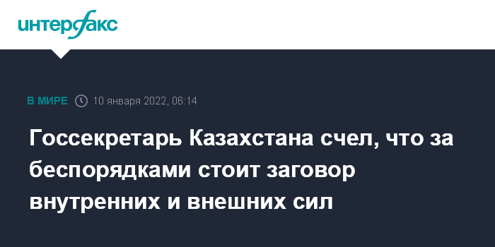 Госсекретарь Казахстана счел, что за беспорядками стоит заговор внутренних и внешних сил