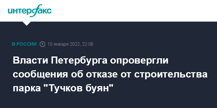 10 января "Русская служба Би-Би-Си" сообщила, что президент Владимир Путин в конце декабря отменил план строительства парка "Тучков буян" между Стрелкой Васильевского острова и Петропавловской крепостью, и распорядился на этом месте продолжить строительство судебного квартала.