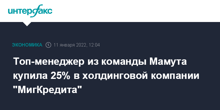 Топ-менеджер из команды Мамута купила 25% в холдинговой компании "МигКредита"
