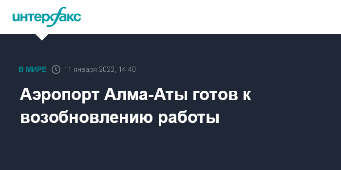 Москва. 11 января. INTERFAX.RU - Аэропорт Алма-Аты готов к возобновлению работы, в ближайшее время будет объявлено, когда именно он откроется, сообщили агентству "Интерфакс" в пресс-службе аэропорта.