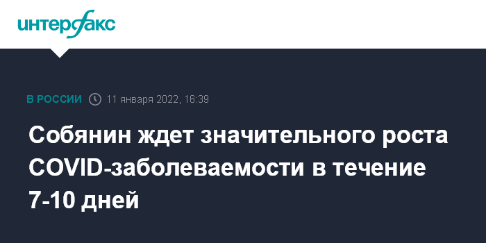 Москва. 11 января. INTERFAX.RU - В Москве растет заболеваемость штаммом коронавируса "омикрон", значительное увеличение показателя прогнозируется в течение 7-10 дней, сообщил мэр столицы Сергей Собянин.