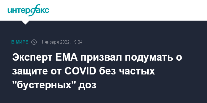 Москва. 11 января. INTERFAX.RU - В Европейском агентстве по лекарственным средствам (EMA) считают, что долгосрочная стратегия борьбы против COVID-19 не должна основываться на постоянных и частых "бустерных" прививках. Об этом заявил во вторник в ходе пресс-конференции руководитель отдела по вакцинации и борьбе с инфекциями EMA Марко Кавалери.