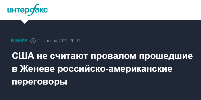 США не считают провалом прошедшие в Женеве российско-американские переговоры