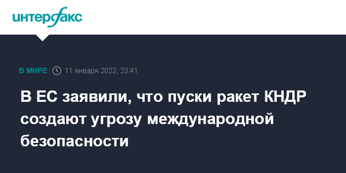 Москва. 11 января. INTERFAX.RU - Евросоюз осуждает запуски ракет КНДР 5 и 11 января, заявил во вторник официальный представитель Европейской внешнеполитической службы (ЕВС).