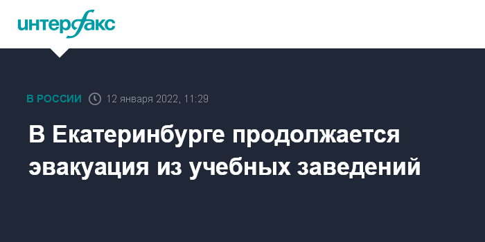 Москва. 12 января. INTERFAX.RU - В Екатеринбурге растет список школ, вузов и колледжей, в которых проводится эвакуация из-за сигналов о минировании. Об этом сообщают представители образовательных учреждений.