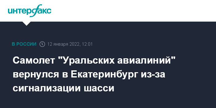 Москва. 12 января. INTERFAX.RU - Самолет авиакомпании "Уральские авиалинии" совершил посадку в аэропорту Екатеринбурга, куда вернулся из-за сработавшей после взлета сигнализации о неисправности, сообщил "Интерфаксу" информированный источник.