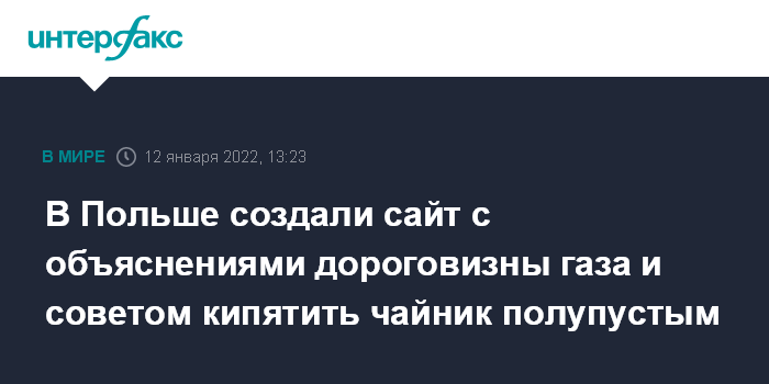 В Польше создали сайт с объяснениями дороговизны газа и советом кипятить чайник полупустым