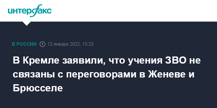 Москва. 12 января. INTERFAX.RU - Стартовавшие во вторник учения Западного военного округа (ЗВО) никак не связаны с переговорами по гарантиям безопасности в Женеве и Брюсселе, заявил пресс-секретарь президента РФ Дмитрий Песков журналистам.