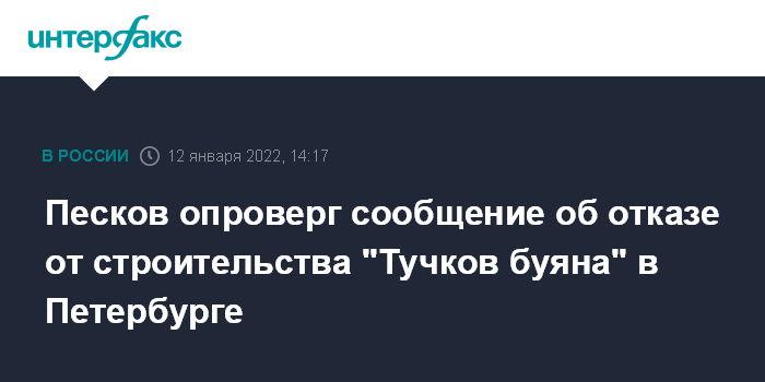 Песков опроверг сообщение об отказе от строительства "Тучков буяна" в Петербурге