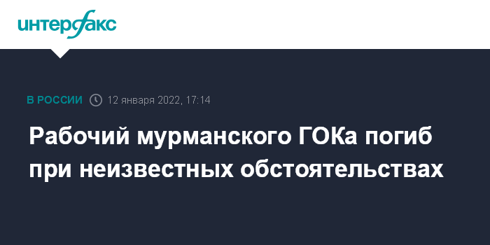 Москва. 12 января. INTERFAX.RU - Мурманские следователи начали проверку по факту гибели рабочего одного из горно-обогатительных комбинатов в Ловозерском районе, сообщили "Интерфаксу" в региональном управлении СКР.