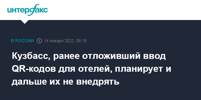 Москва. 14 января. INTERFAX.RU - Кемеровская область, в ноябре прошлого года отложившая до 20 января ввод QR-кодов для заселения в гостиницы, рассчитывает и после этой даты не внедрять ограничения, сообщил министр туризма и молодежной политики Кузбасса Антон Пятовский в ходе пресс-конференции в пятницу.