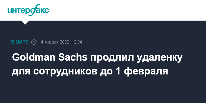 Москва. 14 января. INTERFAX.RU - Банк Goldman Sachs Group Inc. отложил возвращение сотрудников в американские офисы до 1 февраля на фоне новой волны коронавируса, пишет The Wall Street Journal.