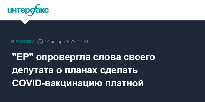 "ЕР" опровергла слова своего депутата о планах сделать COVID-вакцинацию платной