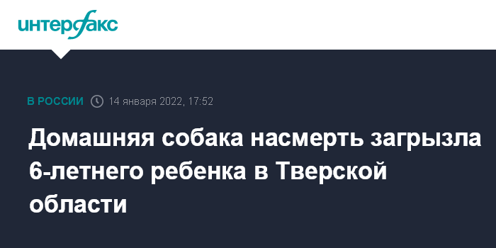 Москва. 14 января. INTERFAX.RU - Прокуратура проводит проверку по факту гибели ребенка в результате нападения собаки в Калининском районе Тверской области.