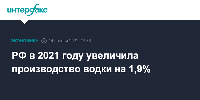 РФ в 2021 году увеличила производство водки на 1,9%
