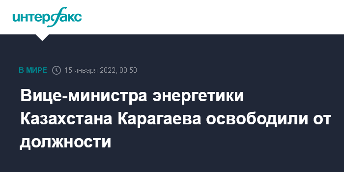 Москва. 15 января. INTERFAX.RU - В Казахстане освобожден от должности вице-министр энергетики Жумабай Карагаев, сообщила пресс-служба правительства.