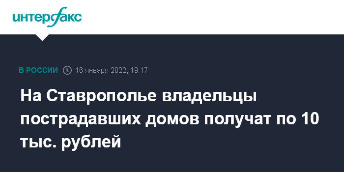 На Ставрополье владельцы пострадавших домов получат по 10 тыс. рублей