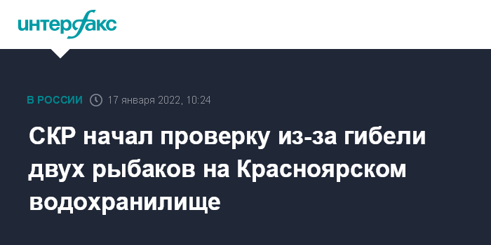 Москва. 17 января. INTERFAX.RU - Следователи в Красноярском крае проводят проверку по факту гибели двух рыбаков, сообщает в понедельник пресс-служба главного следственного управления СКР по региону и Республике Хакасия.