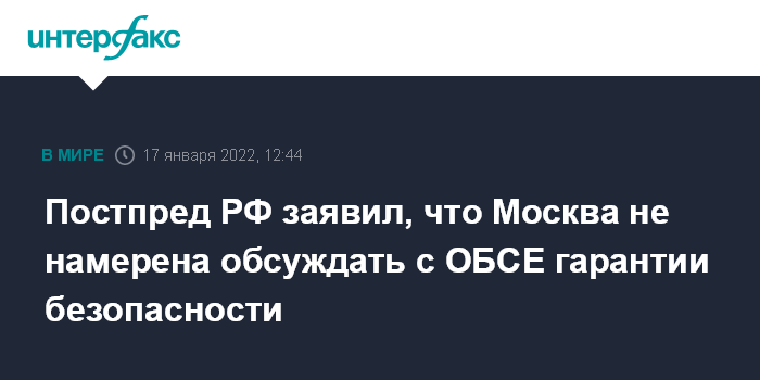 Постпред РФ заявил, что Москва не намерена обсуждать с ОБСЕ гарантии безопасности