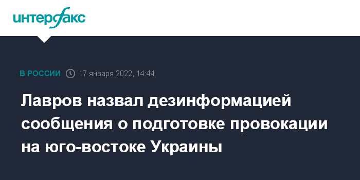 Москва. 17 января. INTERFAX.RU - Заявления США о том, что Россия готовит провокацию для создания предлога для вторжения на Украину являются дезинформацией, заявил глава МИД РФ Сергей Лавров.
