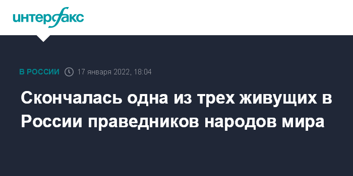 Скончалась одна из трех живущих в России праведников народов мира