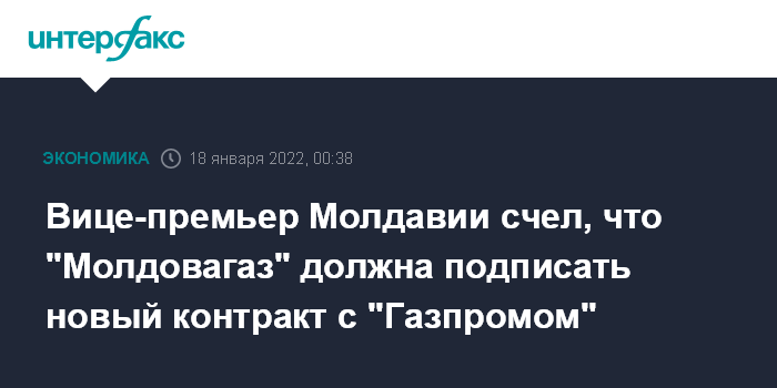 Вице-премьер Молдавии счел, что "Молдовагаз" должна подписать новый контракт с "Газпромом"