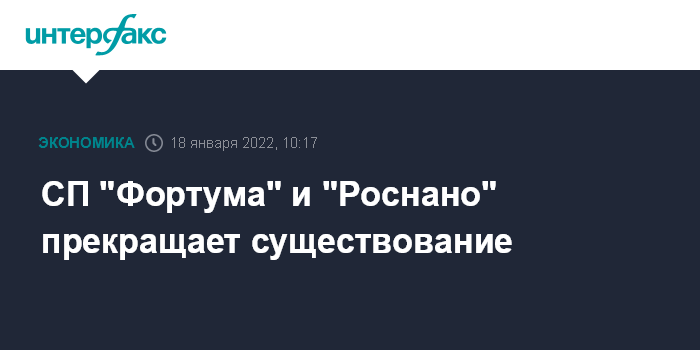 Москва. 18 января. INTERFAX.RU - Совместное предприятие "Фортума" и "Роснано" в сфере возобновляемой энергетики прекращает свое существование, энергокомпания создает новое СП с Газпромбанком, куда перейдут совместные проекты, следует из сообщения на сайте банка, сообщения в телеграм-канале "Роснано" и сообщения "Фортума".