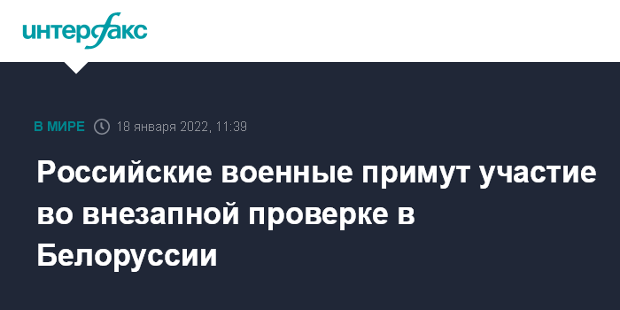 По его словам, в этой связи к предстоящим мероприятиям проверки на территории Белоруссии от российской стороны "привлекается часть органов управления и подразделений Восточного военного округа (ВВО), которые участвуют во внезапной проверке, проводимой в Вооруженных силах Российской Федерации в январе текущего года".