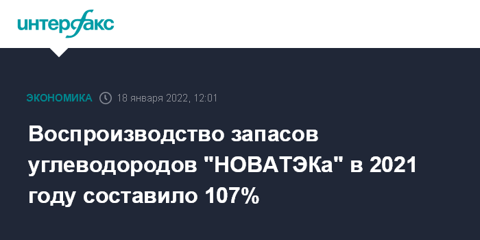 Воспроизводство запасов углеводородов "НОВАТЭКа" в 2021 году составило 107%