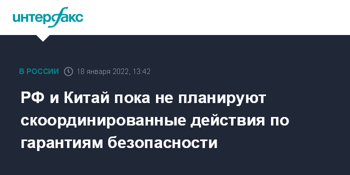 РФ и Китай пока не планируют скоординированные действия по гарантиям безопасности