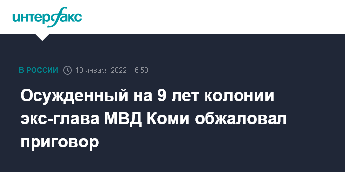 Осужденный на 9 лет колонии экс-глава МВД Коми обжаловал приговор
