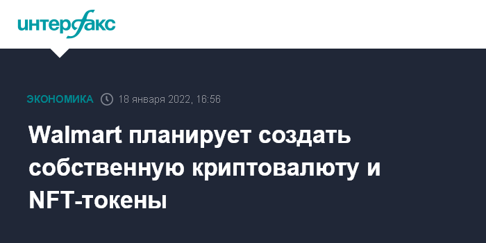 Москва. 18 января. INTERFAX.RU - Крупнейший американский ритейлер Walmart Inc. подал в США документы на регистрацию собственной криптовалюты и невзаимозаменяемых токенов (NFT), пишет MarketWatch.