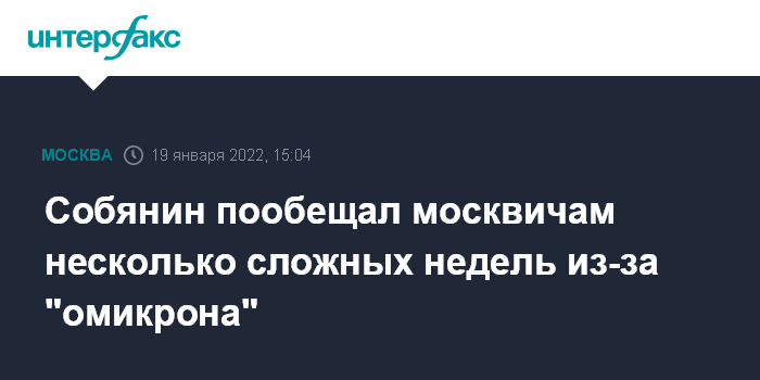 Москва. 19 января. INTERFAX.RU - Из-за распространения штамма коронавируса "омикрон" Москву ждет несколько сложных недель и резко вырастет нагрузка на медработников поликлиник, стационаров и скорой помощи, предупредил мэр города Сергей Собянни.