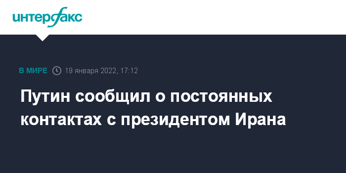 Москва. 19 января. INTERFAX.RU - Президент Владимир Путин поблагодарил президента Ирана Ибрахима Раиси за то, что тот нашел возможность посетить Москву в непростых условиях пандемии. Он также отметил, что находится с ним постоянном контакте с августа 2021 года.