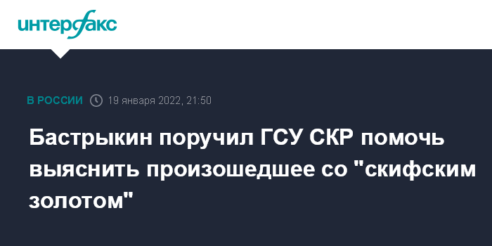 Бастрыкин поручил ГСУ СКР помочь выяснить произошедшее со "скифским золотом"
