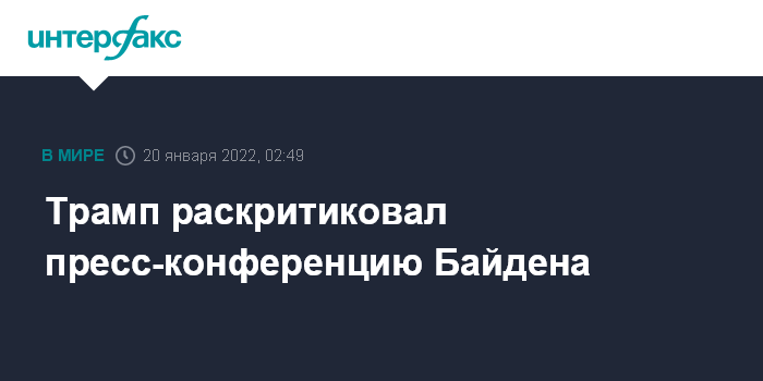 Москва. 20 января. INTERFAX.RU - Экс-президент США Дональд Трамп заявил, что ему никогда бы не позволили так вести себя на пресс-конференции, как это делает нынешний американский лидер Джо Байден.