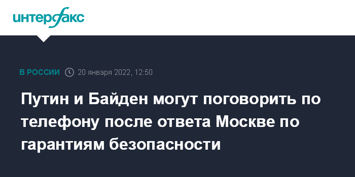 "Нет, президенты сами принимают решение о своих контактах. И после того, как ситуация с ответом американской стороны (по гарантиям безопасности - ИФ) будет прояснена, уже тогда будет понимание, на какой стадии президенты решат подключиться к продолжению диалога", - сказал пресс-секретарь президента РФ.