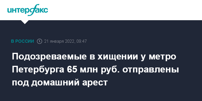 Подозреваемые в хищении у метро Петербурга 65 млн руб. отправлены под домашний арест