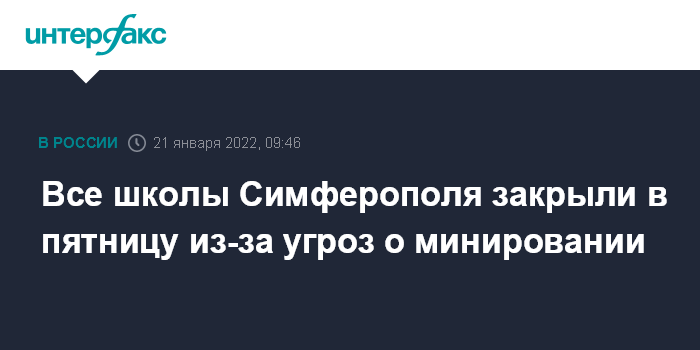 Москва. 21 января. INTERFAX.RU - В Симферополе решили отменить занятия во всех школах города из-за рассылки анонимных сообщений о заложенных бомбах, сообщили в пресс-службе мэрии. Такое решение принял и.о. главы горадминистрации Максим Балахонов.