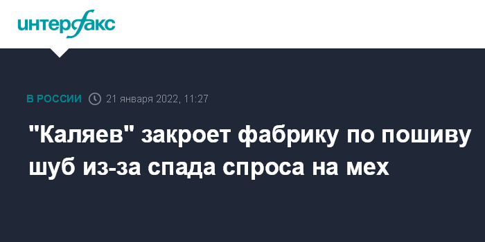 Москва. 21 января. INTERFAX.RU - Производитель и продавец одежды "Каляев" решил закрыть в Москве фабрику, которая выпускала около 15 тысяч норковых шуб в год, из-за спада спроса, пишут "Ведомости". Компания свернет производство изделий из натурального меха и распродаст остатки товаров.