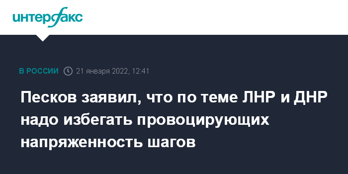 Песков заявил, что по теме ЛНР и ДНР надо избегать провоцирующих напряженность шагов