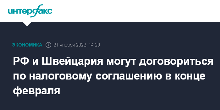 РФ и Швейцария могут договориться по налоговому соглашению в конце февраля