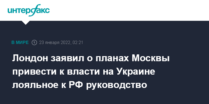 Москва. 23 января. INTERFAX.RU - МИД Великобритании утверждает, что получил информацию, указывающую на стремление РФ привести к власти на Украине позитивно относящихся к Москве руководителей.